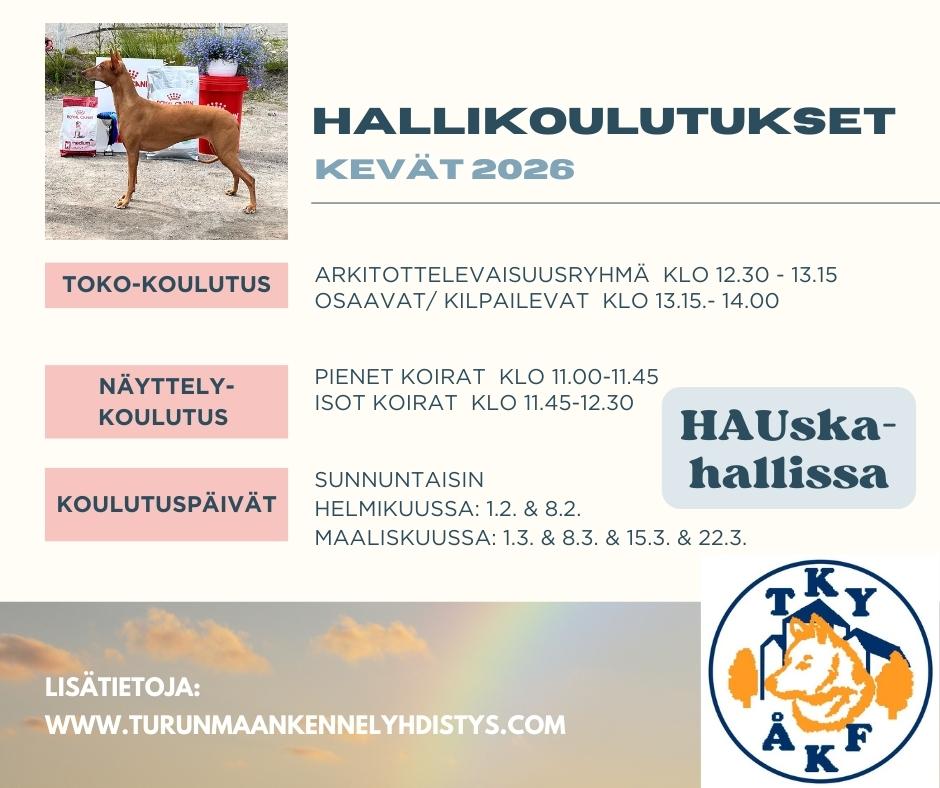 Näyttely- ja TOKO-koulutukset jatkuvat Orikedolla HAUska-hallilla 1.2.2026 Koulutukset